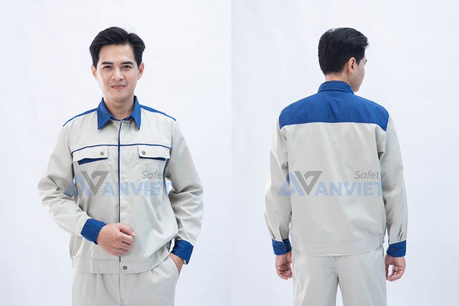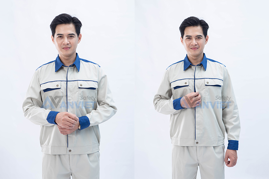 - Khuy cài kim loại chắc chắn, dễ sử dụng, đảm bảo độ bền trong quá trình lao động.