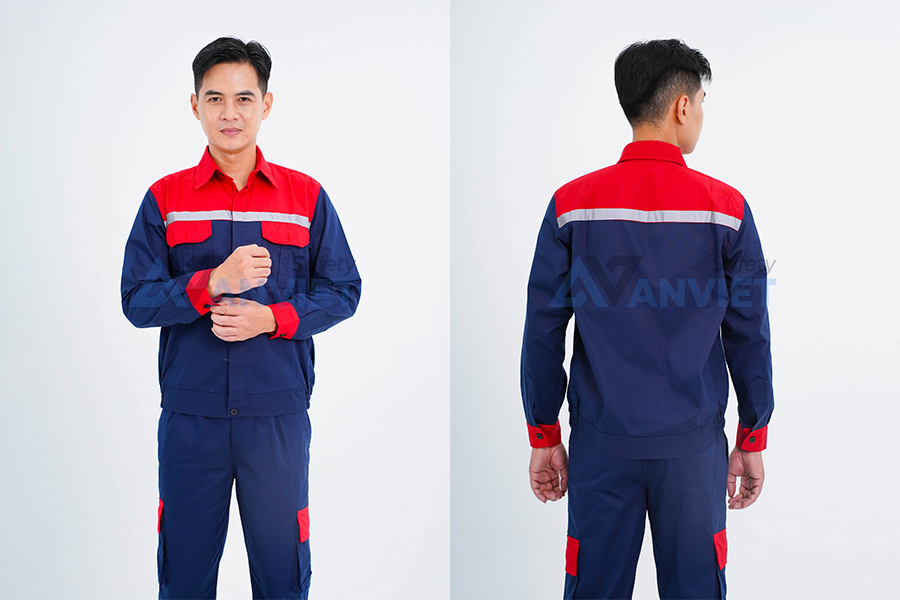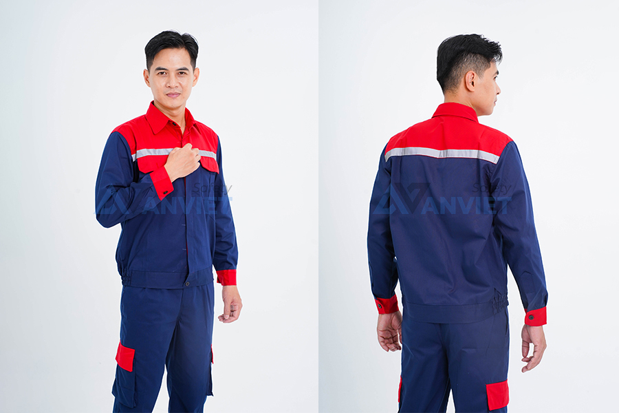 - Dải phản quang an toàn: Được may ngang ngực, phản chiếu ánh sáng tốt, giúp tăng khả năng nhận diện vào ban đêm hoặc nơi ánh sáng yếu, hạn chế rủi ro tai nạn lao động.