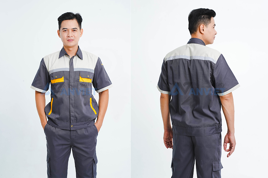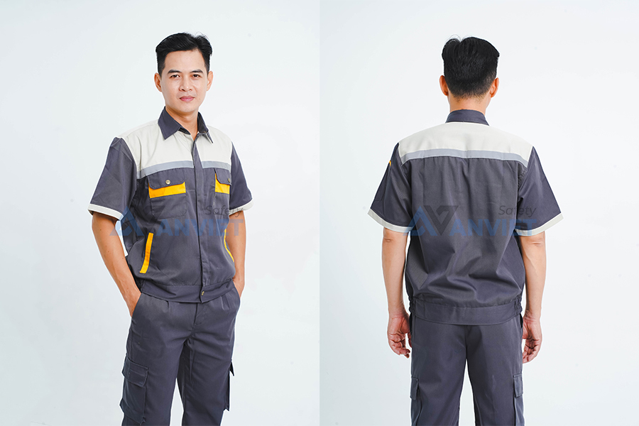 - Thiết kế tay ngắn thoáng mát: Giúp người lao động vận động linh hoạt, không bị gò bó khi làm việc trong thời tiết nóng.