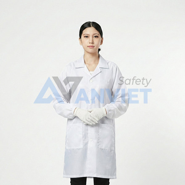 - Áo choàng chống tĩnh điện hiện nay cũng được sử dụng rất phổ biến. Được may bằng vải chống tĩnh điện, được thiết kế may đo rộng rãi giúp cho người mặc thoải mái hơn.