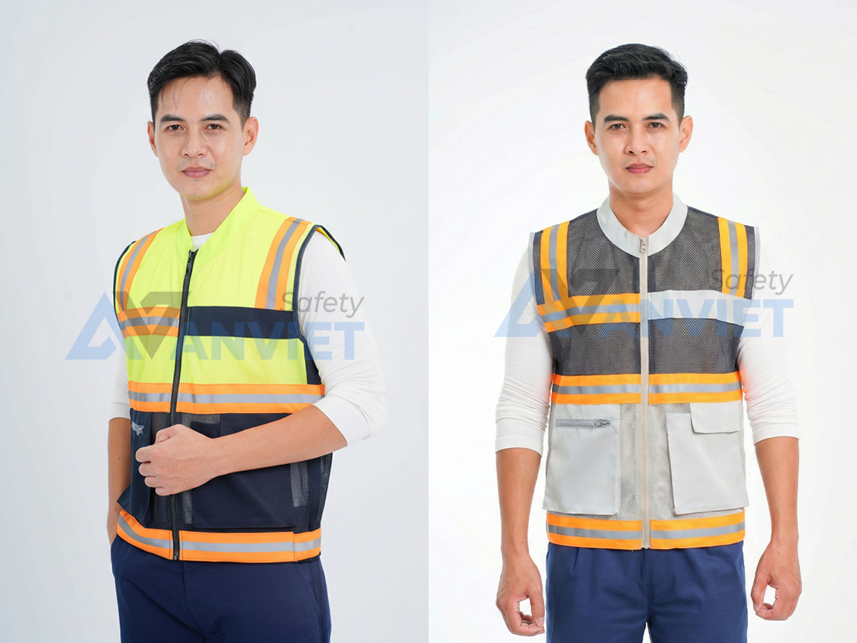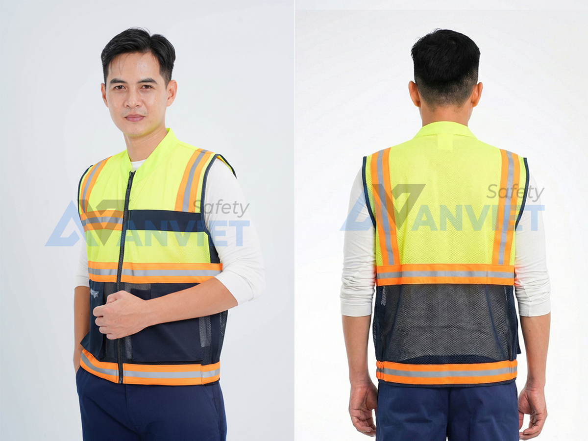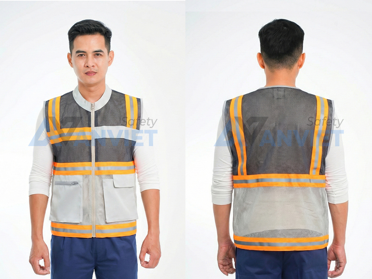 Kiểu dáng: Áo gile 2 túi hộp, may dây phản quang ở mặt trước và sau lưng