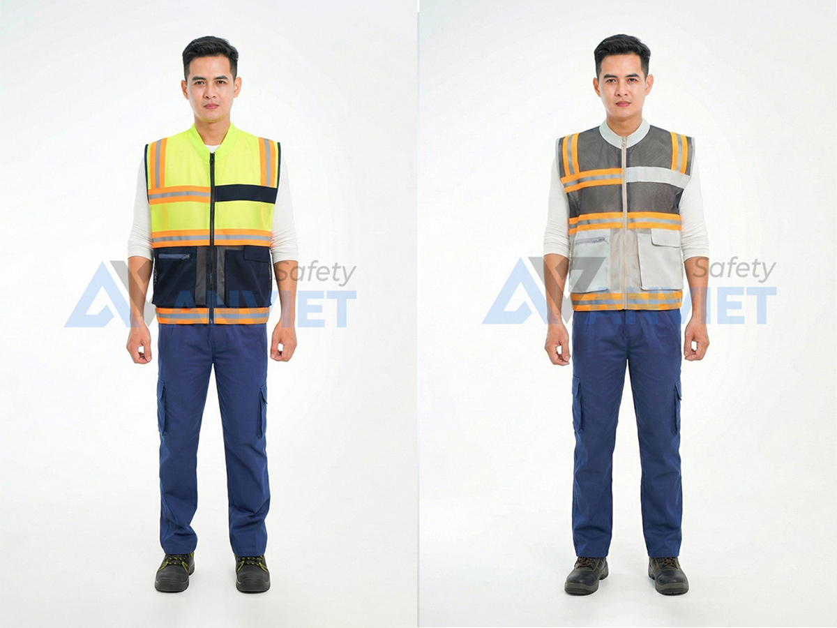 Áo được may dạng gile đơn giản nhưng hiện đại, phù hợp với mọi đối tượng lao động. Hai túi hộp phía trước giúp người dùng dễ dàng mang theo dụng cụ nhỏ, điện thoại hoặc sổ tay. Thiết kế gọn nhẹ, dễ mặc dễ tháo, phù hợp sử dụng cả ngoài trời lẫn trong nhà xưởng.