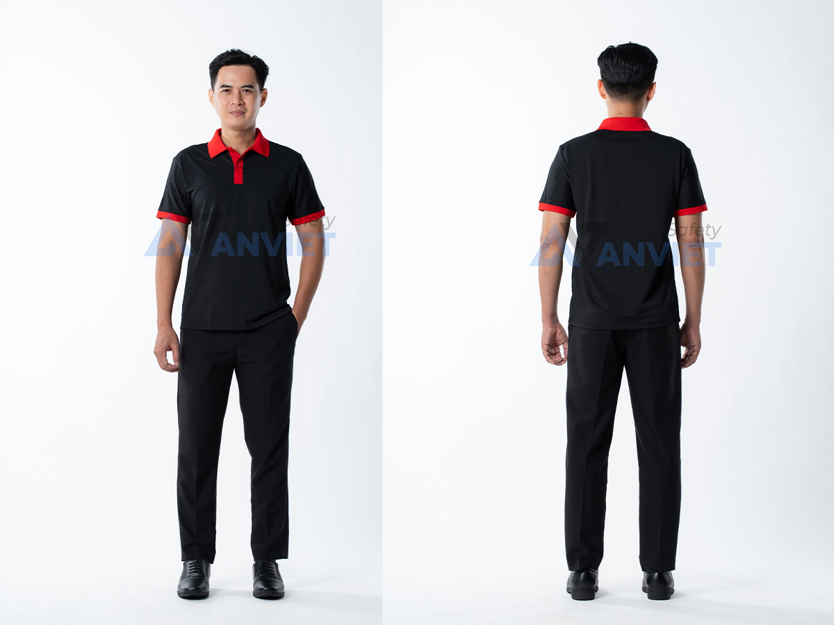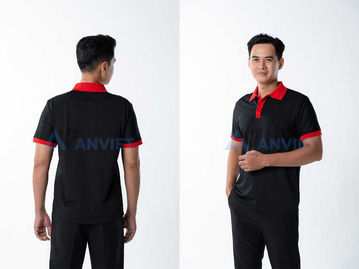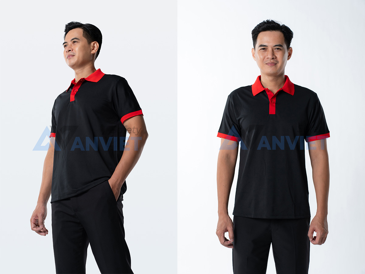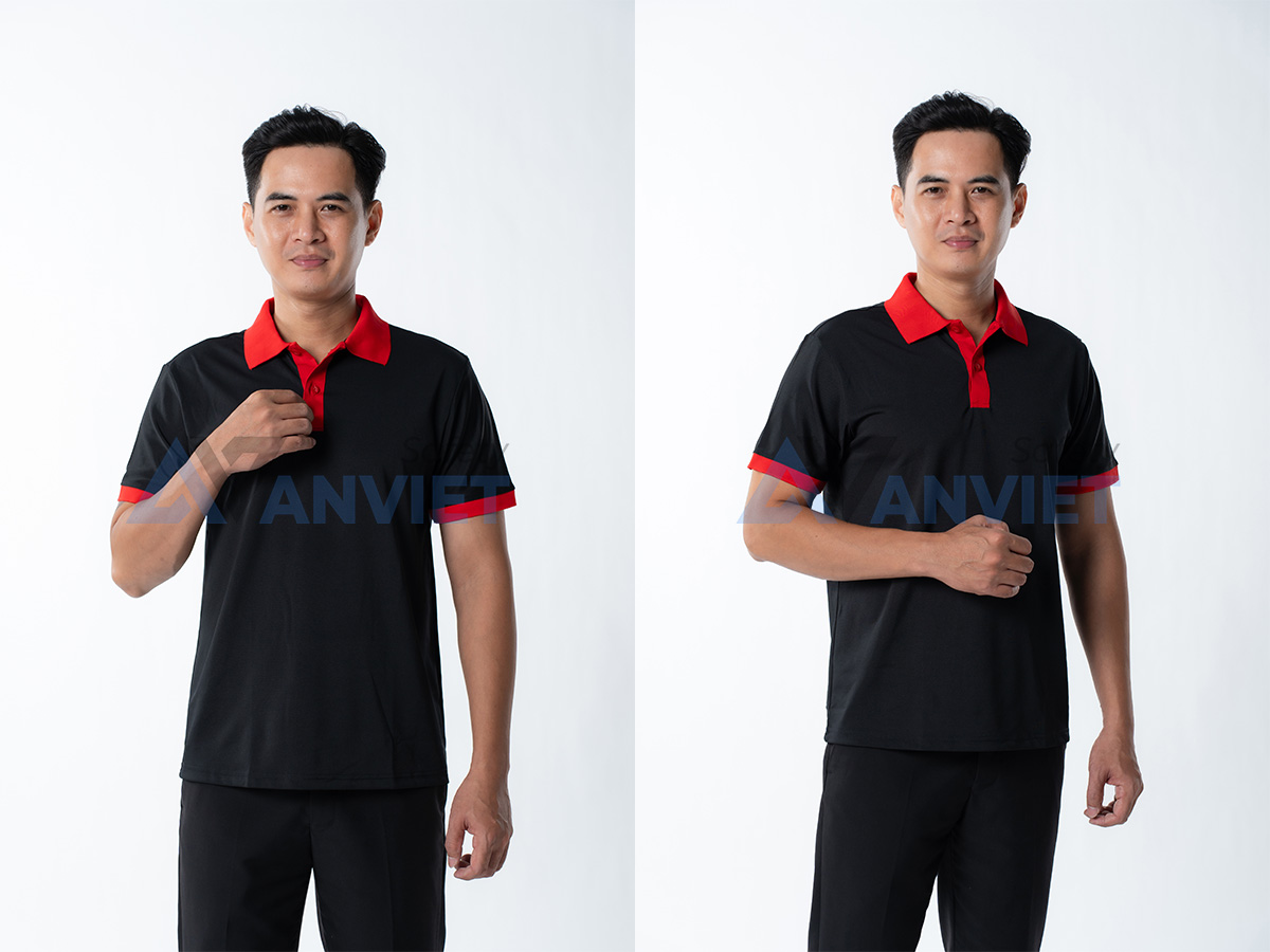 Áo polo đồng phục màu đen phối cổ đỏ P18 phù hợp cho cả đi làm và đi chơi. Áo được làm bằng chất liệu vải cá sấu mè hoặc poly Thái co giãn 4 chiều, mềm mại, thoáng mát, thấm hút mồ hôi tốt, giúp người mặc luôn thoải mái. Đường may tỉ mỉ, giữ form chuẩn, bền đẹp sau nhiều lần giặt.