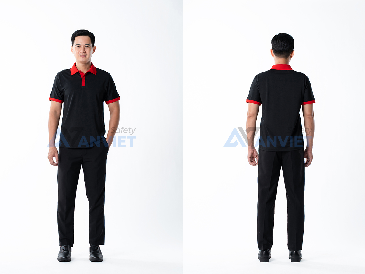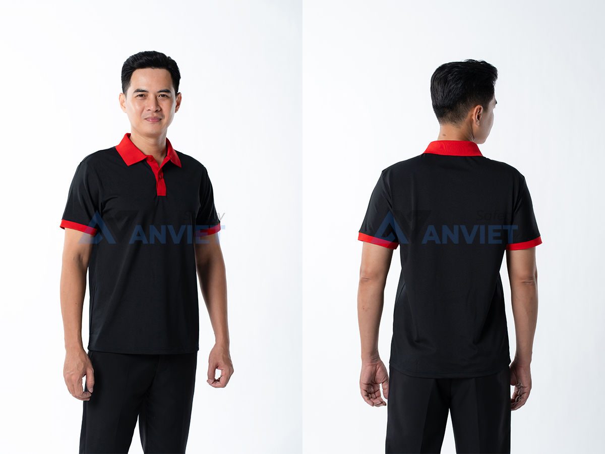 Sản phẩm: Áo polo đồng phục màu đen phối cổ đỏ P18 bền màu, thoáng mát, Size M