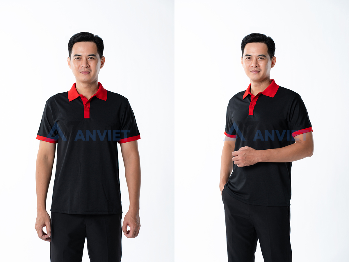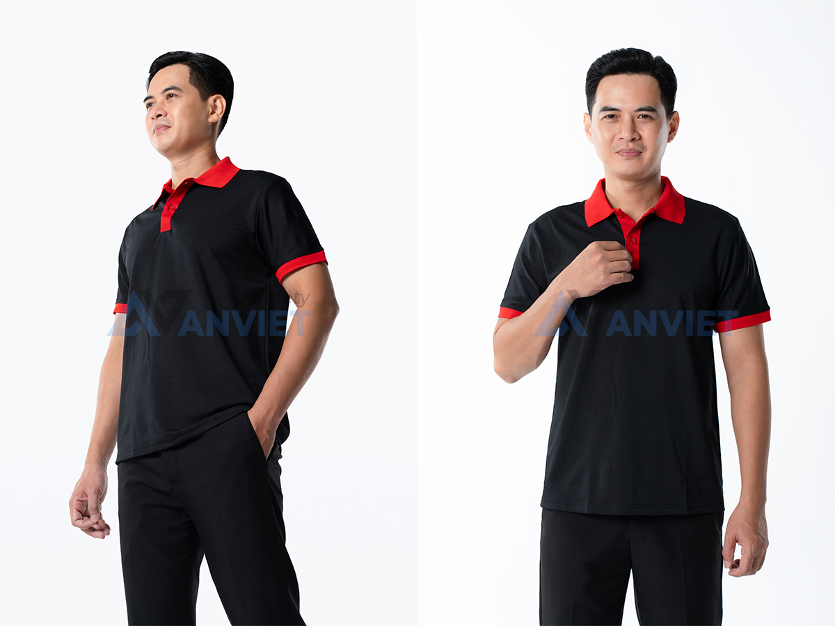 Áo polo đồng phục màu đen phối cổ đỏ P18 bền màu, thoáng mát, Size M