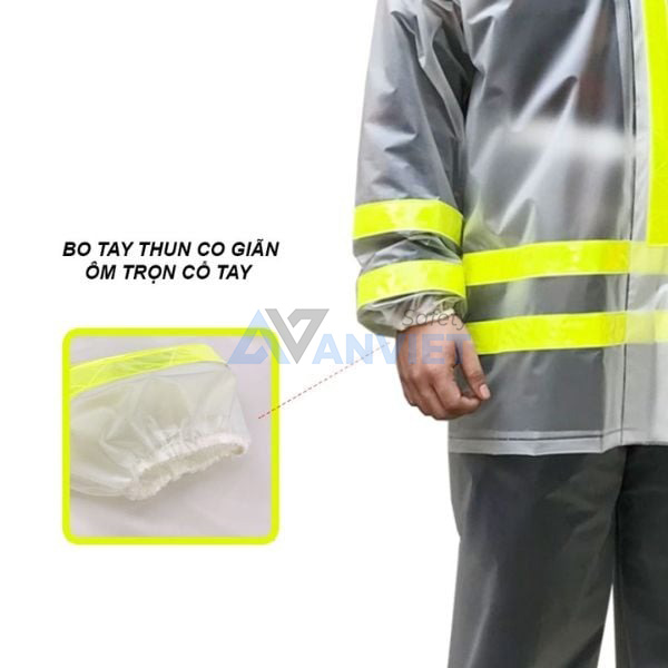 Bộ quần áo mưa trong suốt phản quang A14, Size L