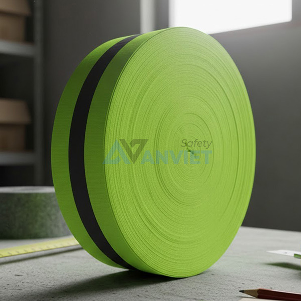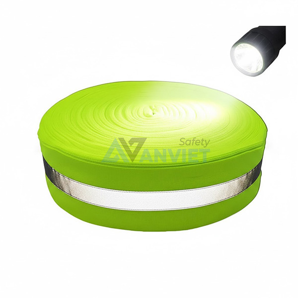 Cuộn phản quang màu xanh chuối bản 5cm là vật liệu chuyên dụng giúp tăng khả năng nhìn thấy trong điều kiện thiếu sáng. Bề mặt vải được phủ lớp phản quang chất lượng cao, khi gặp ánh đèn sẽ phát sáng rõ ràng, hỗ trợ nhận diện từ xa, giảm thiểu rủi ro tai nạn lao động và giao thông.