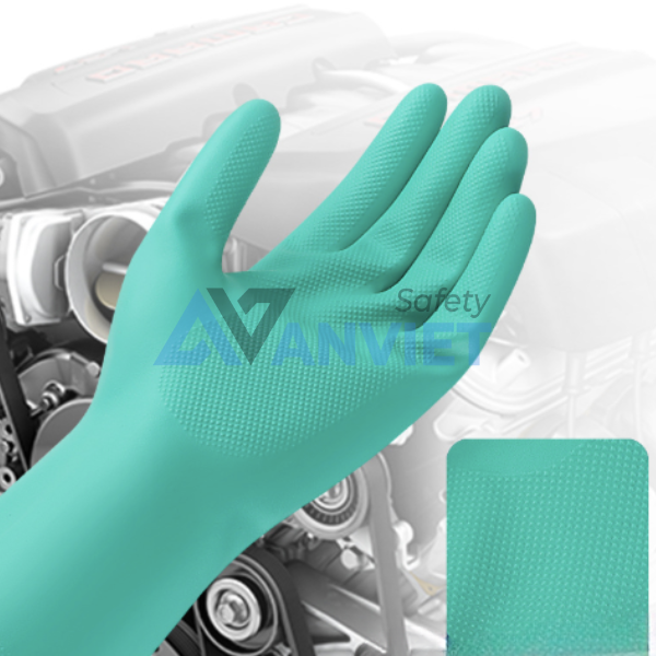 Găng tay bảo hộ chịu dầu hóa chất nhẹ Nastah NF1513 T161, là dòng găng tay bảo hộ chuyên dụng được sản xuất tại Malaysia, thiết kế để bảo vệ tay người lao động trong môi trường tiếp xúc thường xuyên với dầu mỡ, dung môi và hóa chất nhẹ. Sản phẩm được làm từ cao su tổng hợp Nitrile cao cấp, kết hợp lớp lót cotton flocklined bên trong, mang lại cảm giác thoải mái khi đeo lâu, đồng thời đảm bảo độ bền và an toàn trong suốt quá trình sử dụng. Với chiều dài khoảng 330mm và độ dày 0.38mm, găng tay giúp bảo vệ hiệu quả cả bàn tay và cổ tay.