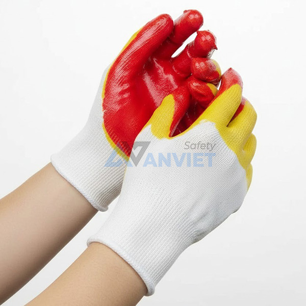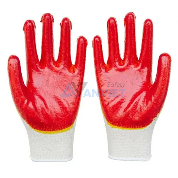 Lớp cao su đỏ: Phủ ngoài, giúp tăng khả năng chống mài mòn, chống trơn trượt và kéo dài tuổi thọ găng tay.