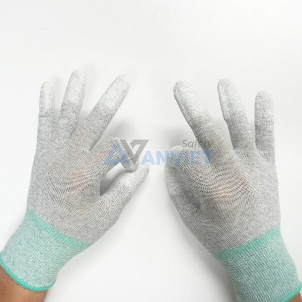Găng tay PU phủ ngón chống tính điện là loại găng tay bảo hộ lao động được cấu tạo bởi sợi Polyester hoặc carbon hoặc pha trộn giữa các sợi cotton được phủ một lớp nhựa PU.