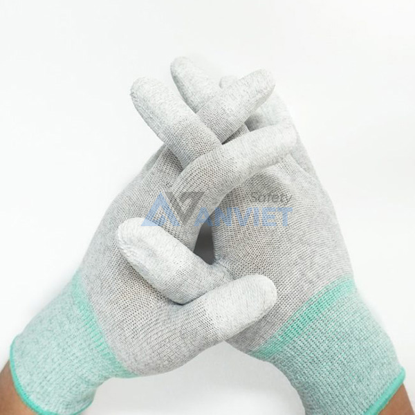 Gang tay phủ PU đầu ngón còn có khả năng chống tĩnh điện tốt, các phòng sạch thường dùng loại gang tay này để công nhân kỹ thuật thao tác.