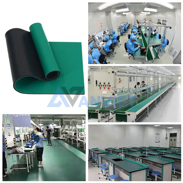 - Lót mặt bàn làm việc trong dây chuyền lắp ráp điện tử, bán dẫn