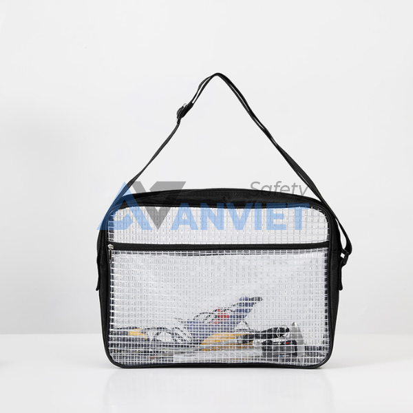 Túi đeo vai PVC phòng sạch chống tĩnh điện ESD S149, được thiết kế chuyên dụng cho môi trường phòng sạch và các khu vực yêu cầu kiểm soát bụi, tĩnh điện nghiêm ngặt. Sản phẩm làm từ nhựa PVC lưới trong suốt, dày dặn, không bám bụi, không thấm nước, giúp bảo vệ an toàn vật dụng và thiết bị khi làm việc trong nhà máy, khu công nghiệp bán dẫn hoặc khi di chuyển giữa các khu vực sản xuất. Thiết kế trong suốt giúp dễ dàng quan sát và kiểm tra đồ bên trong, đáp ứng tốt các yêu cầu an ninh và phòng sạch.