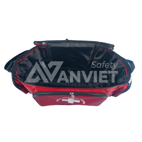 Túi y tế loại A nhiều ngăn, chống thấm nhẹ, tiêu chuẩn trang bị an toàn L120 là trang bị y tế bắt buộc dành cho cơ sở, doanh nghiệp có quy mô từ 25 người lao động trở xuống. Sản phẩm được thiết kế chuyên dụng để chứa đầy đủ các dụng cụ và vật tư sơ cấp cứu theo danh mục quy định. Túi có kiểu dáng gọn nhẹ, màu đỏ đặc trưng kèm biểu tượng y tế dễ nhận diện, thuận tiện bảo quản và sử dụng khi xảy ra sự cố cần sơ cứu nhanh chóng.