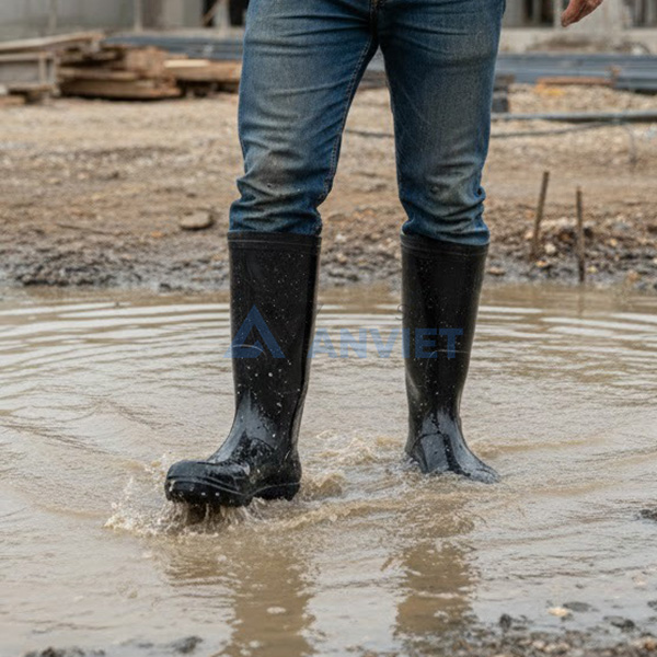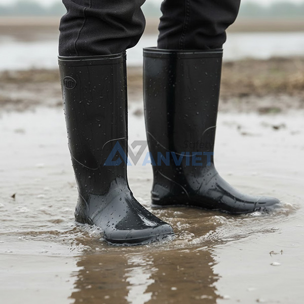 Chất liệu PVC dày dặn giúp ngăn nước xâm nhập, giữ chân luôn khô ráo khi đi mưa, làm việc tại công trường, ruộng vườn hay khu vực ngập nước.
